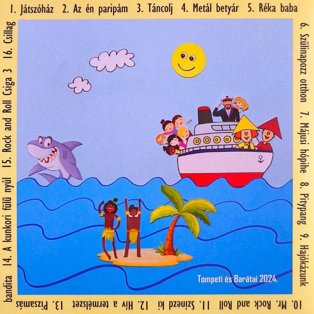 A ,,Hajókázunk" lemez a legtöbb meglepetést tartogatja a Kispajtásoknak! Olyan slágerekkel, mint a ,,Színezd ki, Metál betyár, Játszóház, Az én paripám és a Mr. Rock&Roll" - nem lehet betelni. Ugyanennyi híres költemény is helyet kapott a CD-én, melyek sokatmondóak a zenekaron felnőtt csemeték füleinek, csak úgy, mint a Pitypang fújó dal és a ,,Pizsamás bandita".